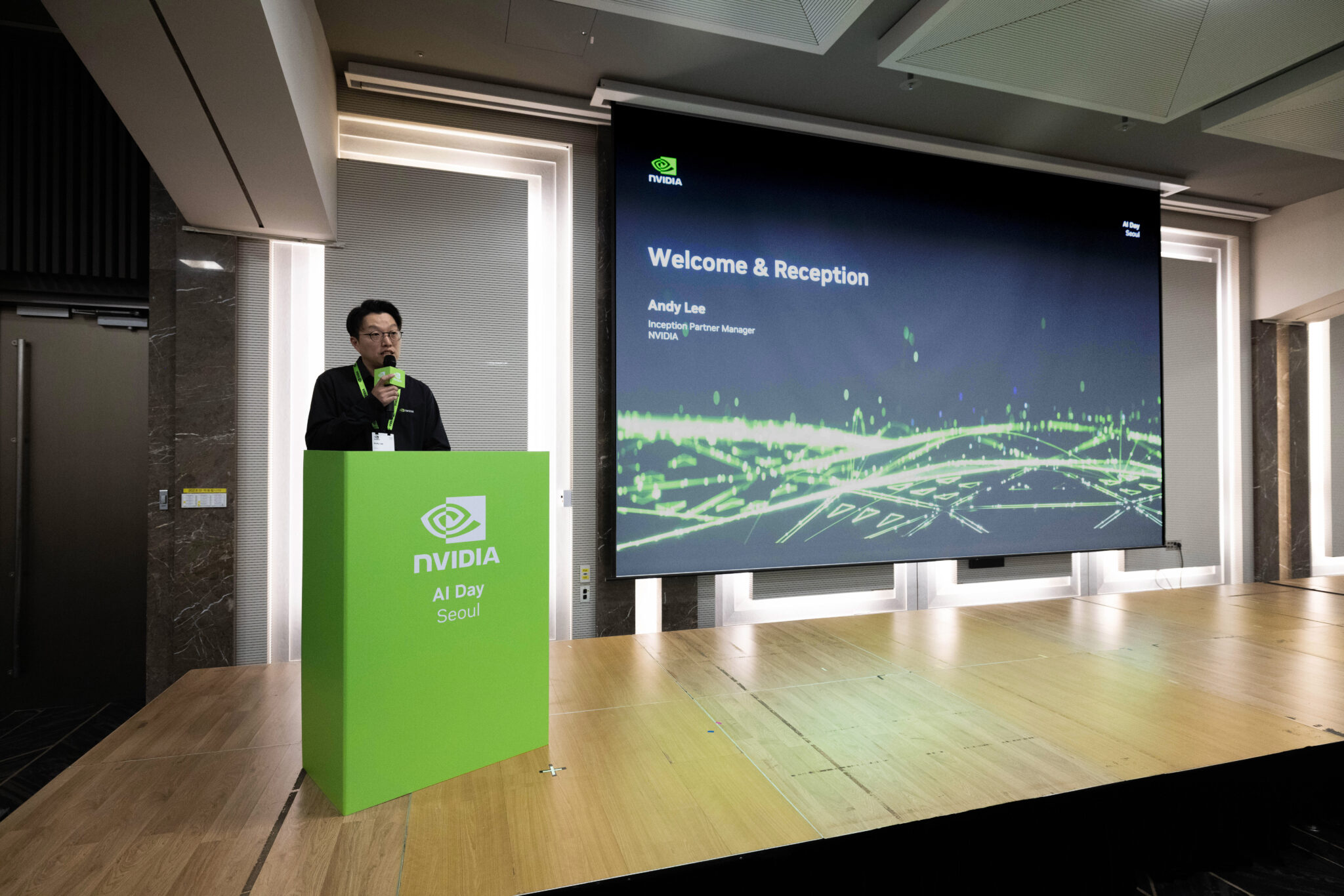 Andy Lee, Inception program manager at NVIDIA, gave opening remarks at the Inception and Venture Capital reception, highlighting this year’s Inception Grand Challenge in Korea.