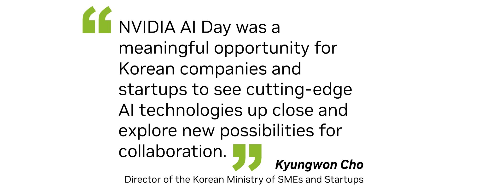 “NVIDIA AI Day was a meaningful opportunity for Korean companies and startups to see cutting-edge AI technologies up close and explore new possibilities for collaboration,” said Kyungwon Cho, director of the Korean Ministry of SMEs and Startups. “The 260,000-GPU AI infrastructure announced at the recent APEC Summit will play a major role in advancing the next phase of Korea’s AI ecosystem. We expect this to help startups move faster in developing their technologies and spark new waves of innovation across industries. The Ministry of SMEs and Startups will continue working with NVIDIA to create even more opportunities for Korean startups to grow and compete globally.”