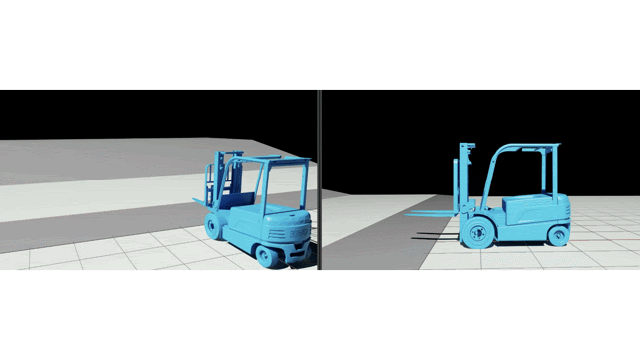 Cyngn tests a forklift’s tire dynamics in NVIDIA Isaac Sim as it moves across various inclines.