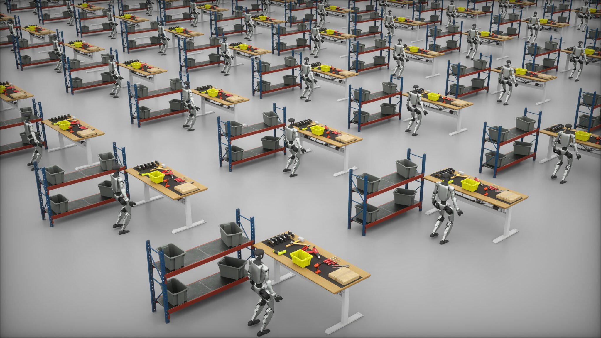 Idealworks tests multiple robots at once in a physically based factory setting using NVIDIA Isaac Sim and Mega.
