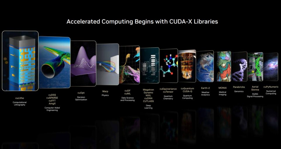 But CUDA-X and many open-source software libraries and frameworks are where much of the magic happens. CUDA-X libraries accelerate workloads across every industry and application — engineering, finance, data analytics, genomics, biology, chemistry, telecommunications, robotics and much more.