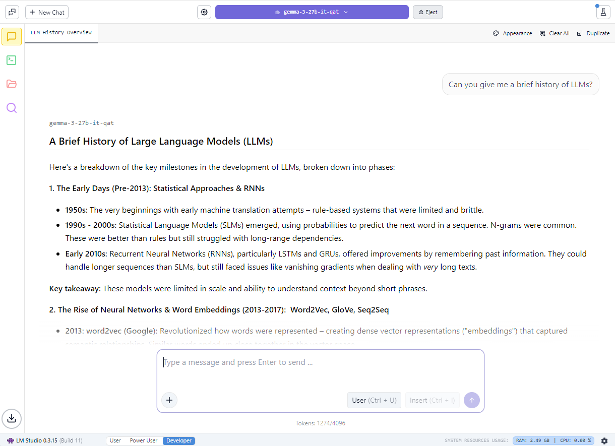 In addition to greater privacy and performance, running LLMs locally removes restrictions on how many files can be loaded or how long they stay available, enabling context-aware AI conversations for a longer period of time. This creates more flexibility for building conversational and generative AI-powered assistants.