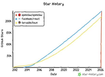By early 2026, the open source project OpenClaw had become a phenomenon. In January, its GitHub star count crossed 100,000 as developer interest surged. Community dashboards and traffic analytics showed more than 2 million visitors in a single week. By March, OpenClaw topped 250,000 stars — overtaking React to become the most-starred software project on GitHub in just 60 days.